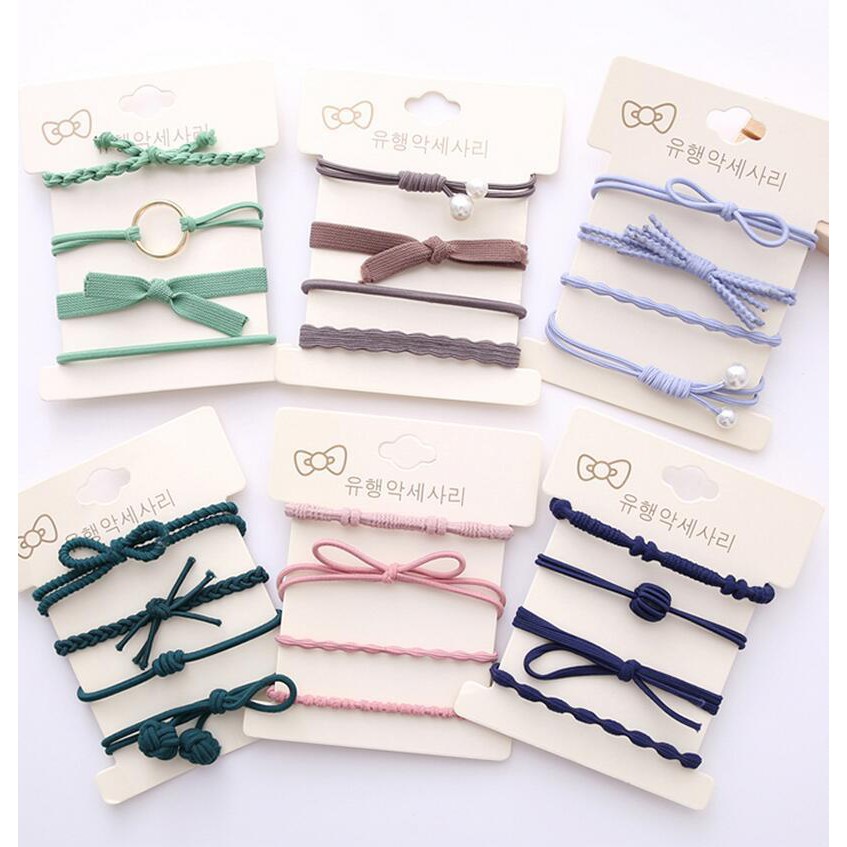 chỉ còn 18,900đ [Combo 4 chiếc] Phụ Kiện Tóc - set cột tóc xinh xắn siêu co giãn Phong Cách Hàn Quốc