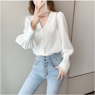 Áo sơ mi tiểu thư kiểu công sở hàn quốc màu trắng kèm video ảnh thật free ship